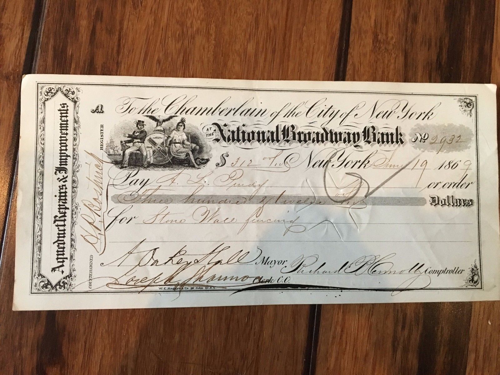 Boss Tweed Era New York City Signed Check A Oakey Hall 1869 Tammany Hall Frauds
