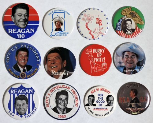 Title (ebay affiliate link): S000. VINTAGE: Lot of 12: RONALD REAGAN Large Size Pinback Buttons (1980''s) `