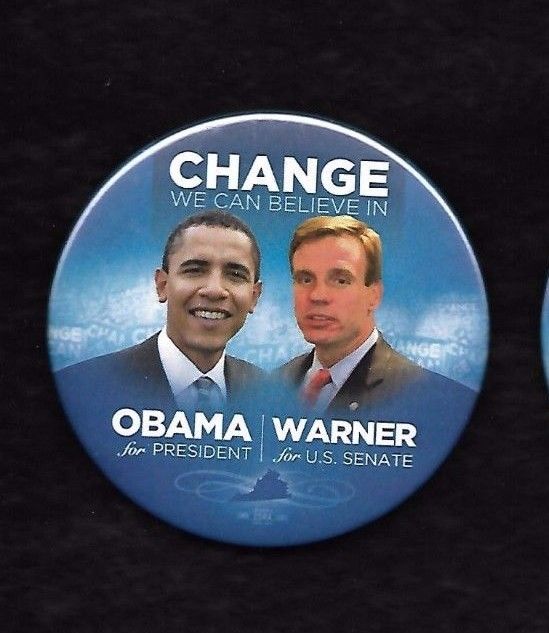 Title (ebay affiliate link): BARACK OBAMA 2008 jugate Virginia coattail button with Senator MARK WARNER