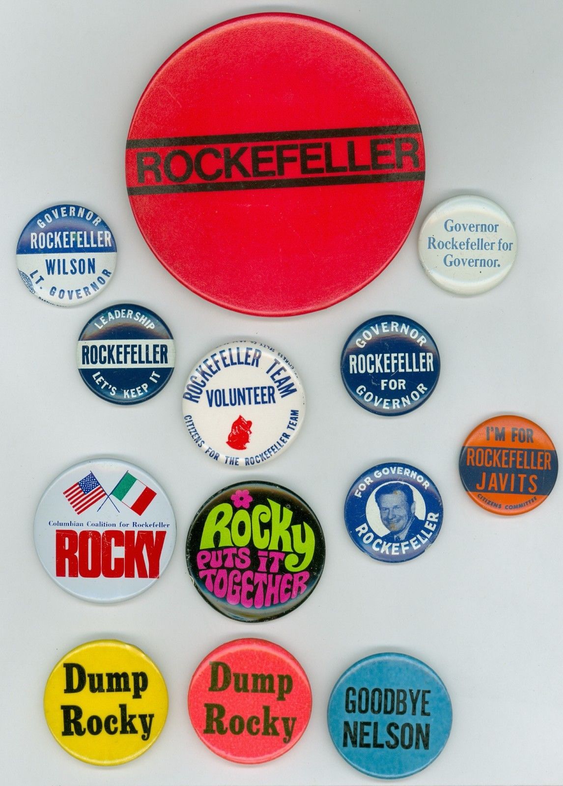 13 Vintage 1950s-70s New York Governor Rockefeller Political Pinback Buttons