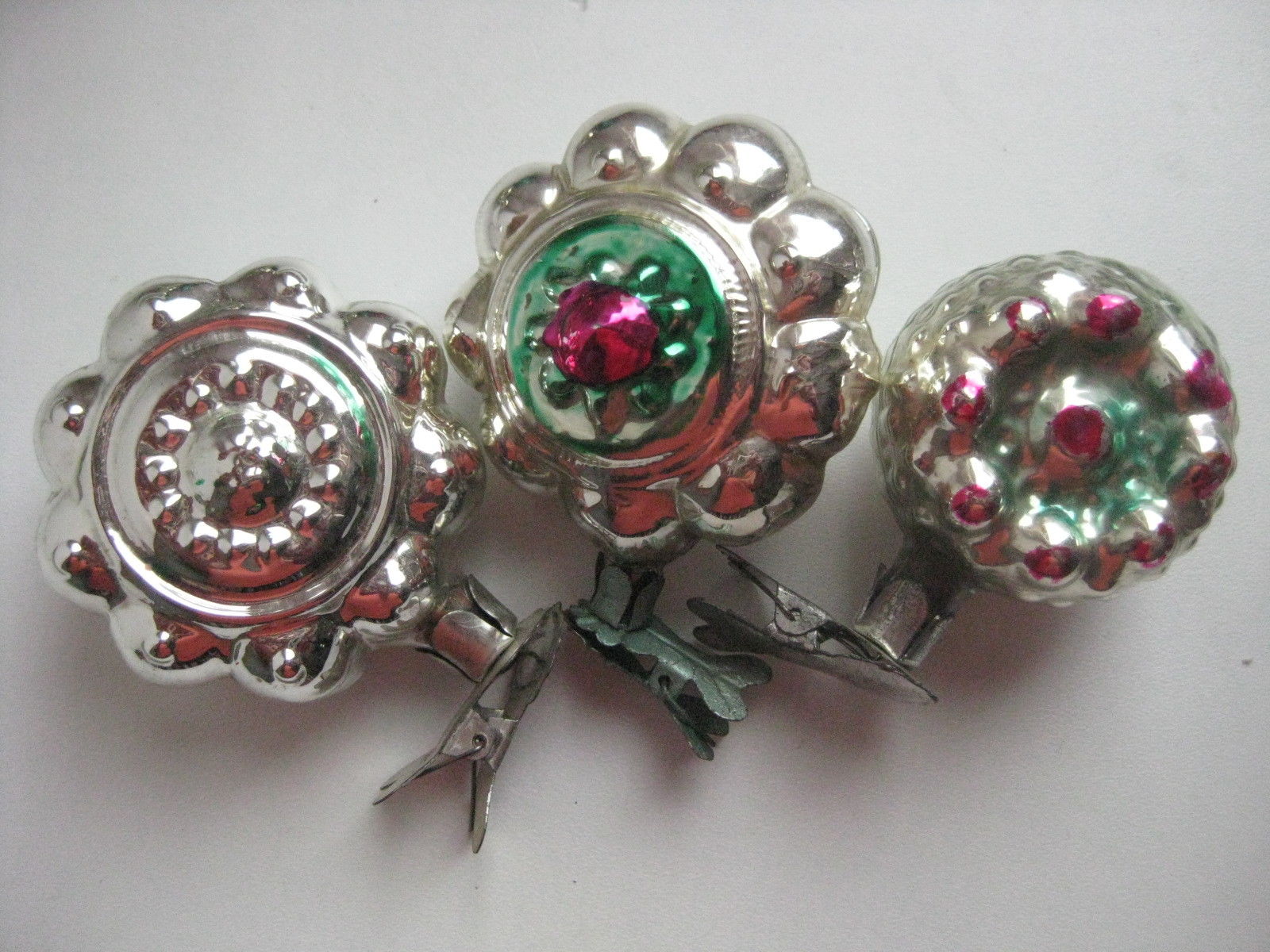 Title (ebay affiliate link): Antique Russian Christmas Silver Glass Ornament "Strawberry 3 Flowers"