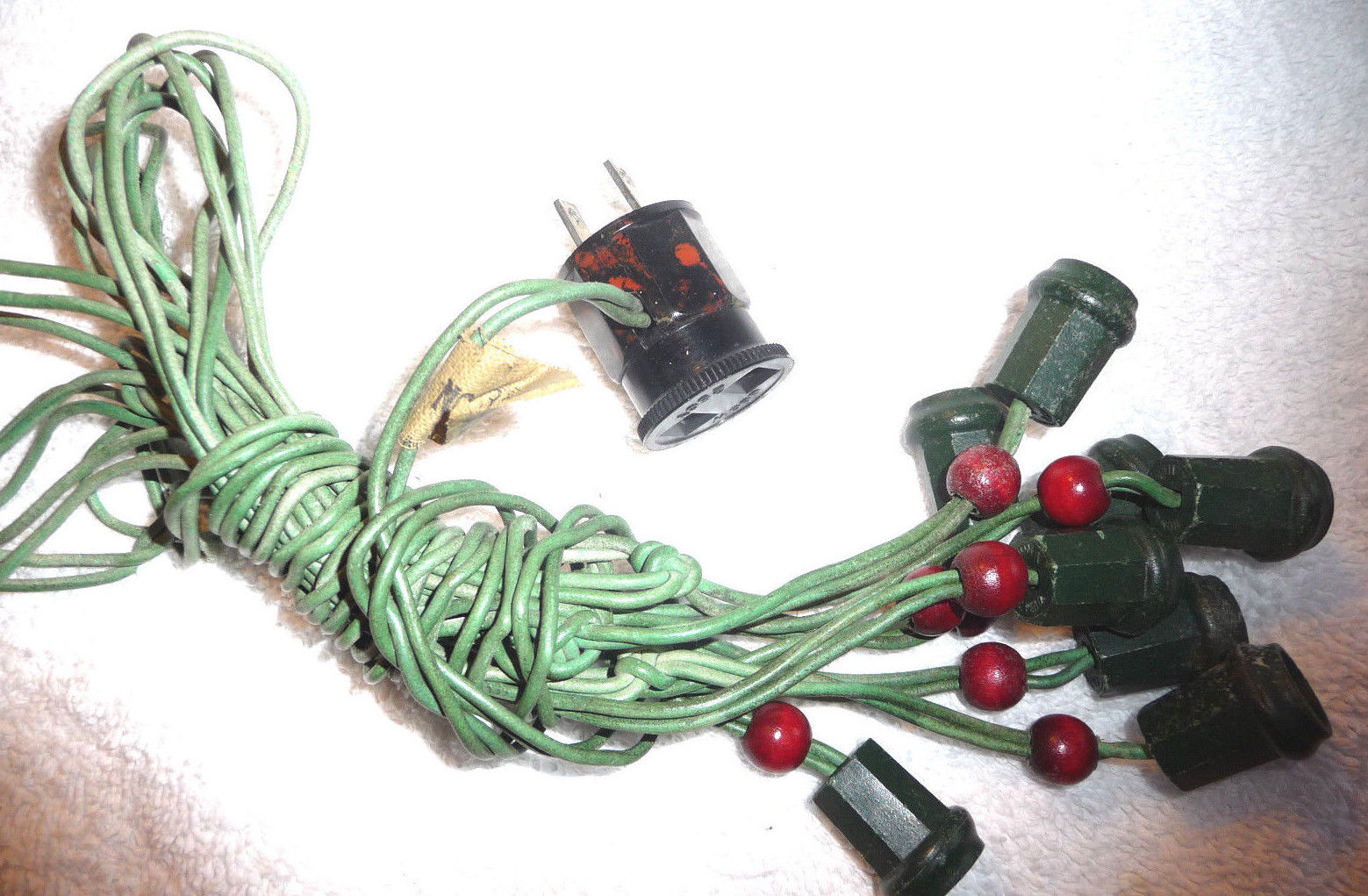 Title (ebay affiliate link): WORKING VINTAGE BUBBLE LIGHTS CORD C6 8 SOCKET WITH RED WOODEN BEADS