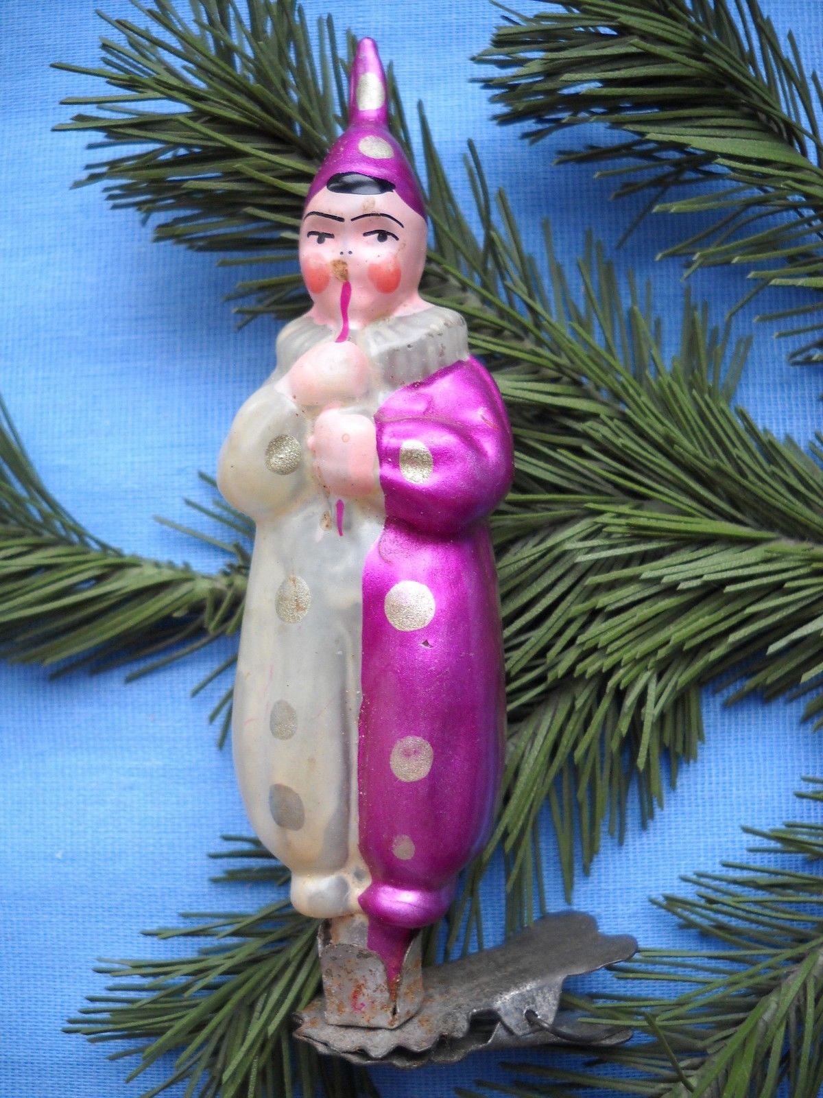 VINTAGE RUSSIAN GLASS CHRISTMAS ORNAMENT CLOWN