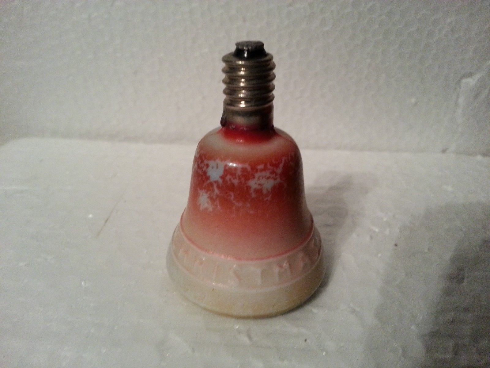 Title (ebay affiliate link): Antique Vintage Figural Christmas Greetings BELL Milk Glass Light Bulb Japan