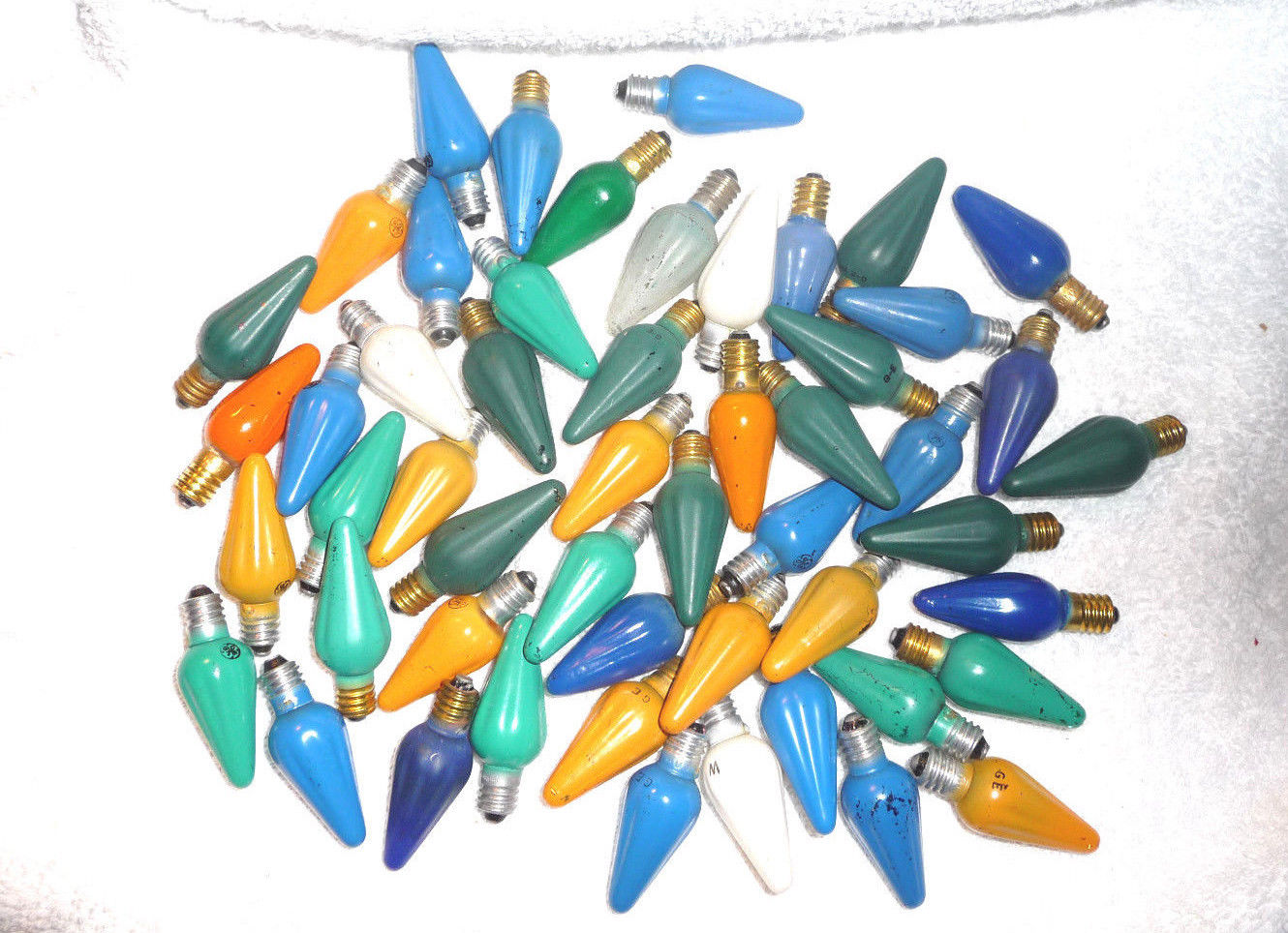HUGE BLOW OUT LOT OF 50 WORKING C6 CANDLE FLAME LIGHTS, NICE MIX OF COLORS