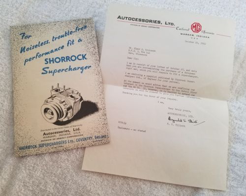 Title (ebay affiliate link): 1952 Shorrock Supercharger ORIGINAL BROCHURE & Letter From Distributor