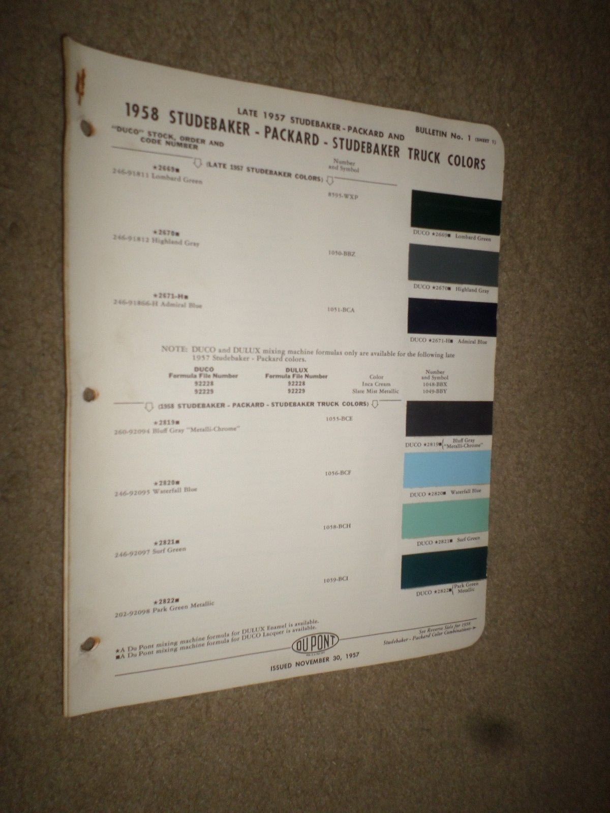 Title (ebay affiliate link): 1958 Studebaker Packard & Studebaker Truck Colors Brochure (Color Chips)