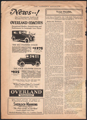 Original 1925 Canadian Willys Overland ad 4 & 6 Cylinder Coach Canada