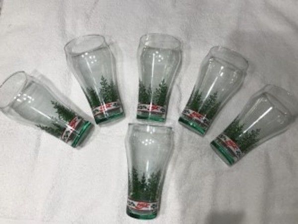 Title (ebay affiliate link): Vintage Coca Cola Set of 6 Holiday Glasses ~ Christmas Tree/Holly Trim Glasswear