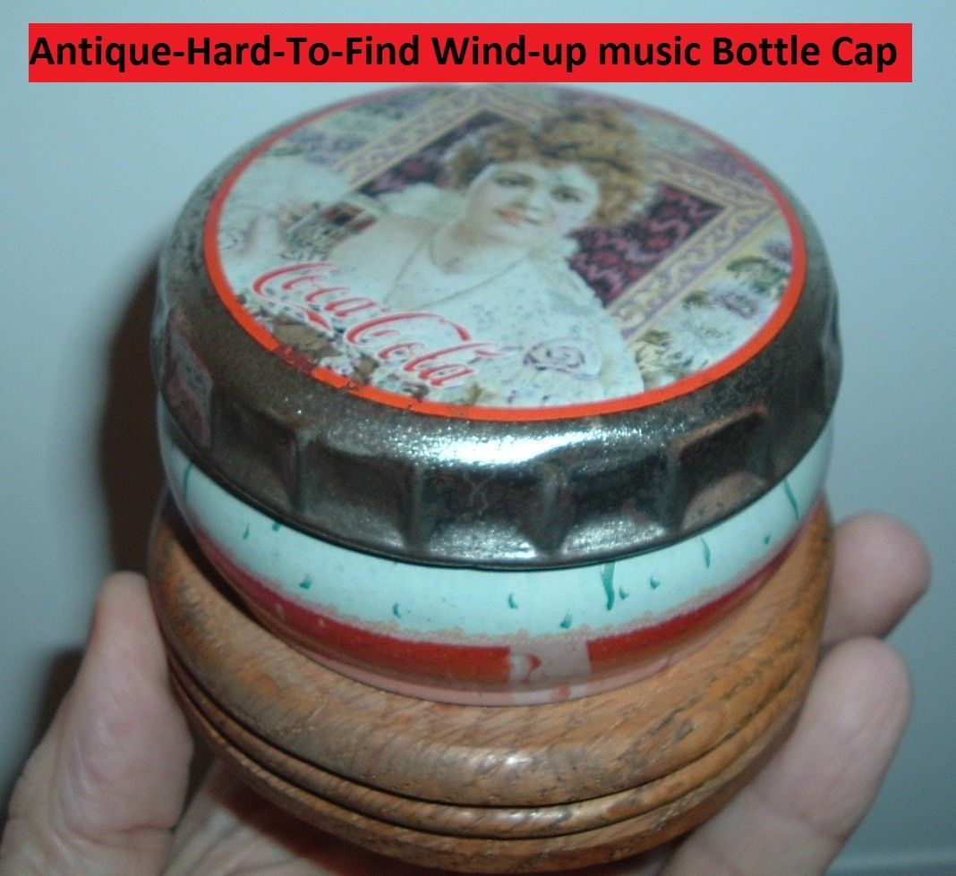Title (ebay affiliate link): Antique Coca Cola Soda Pop Coke Bottle WIND-UP Music Advertising Song Bottle Cap
