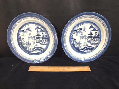 PAIR HEAVY ANTIQUE CHINESE EXPORT CANTON DINNER PLATES 10"