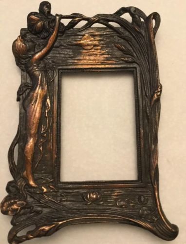 Antique c1900 Art Nouveau Victorian Figural Girl Flower Cast iron Frame