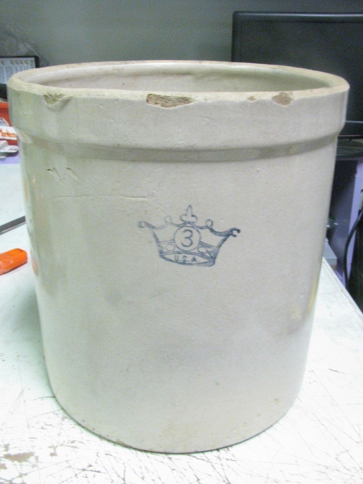 Antique #3 Crown Crock approx. 11.5" x 10.5" wide