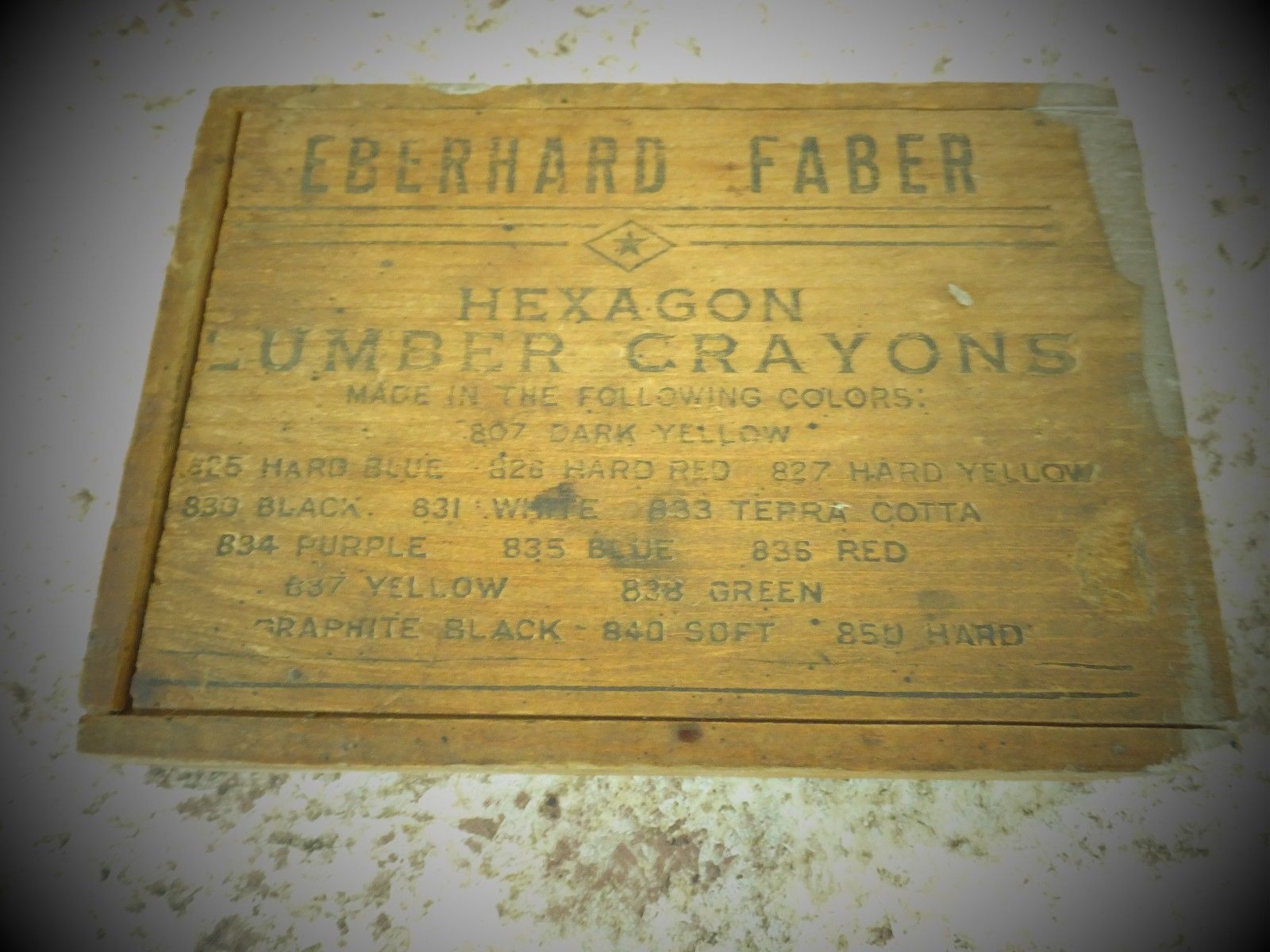 Title (ebay affiliate link): Antique Wooden Lumber Crayons EBERHARD FABER Dovetail Box Carpenter Tool