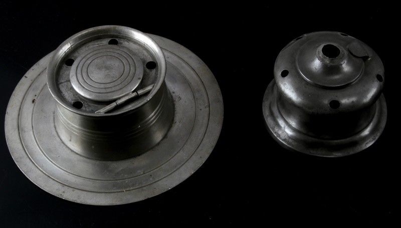 2 ANTIQUE AMERICAN PEWTER AND GLASS INK WELL LOT