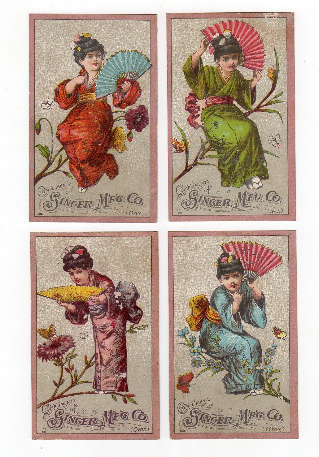 Antique Advertising Trade Cards Singer Sewing Machines Oriental Girls Set of 4