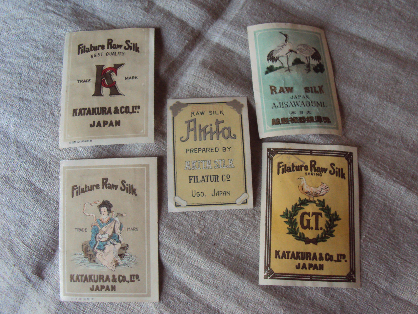 5 1920''s Japan Raw Silk Filature Labels F