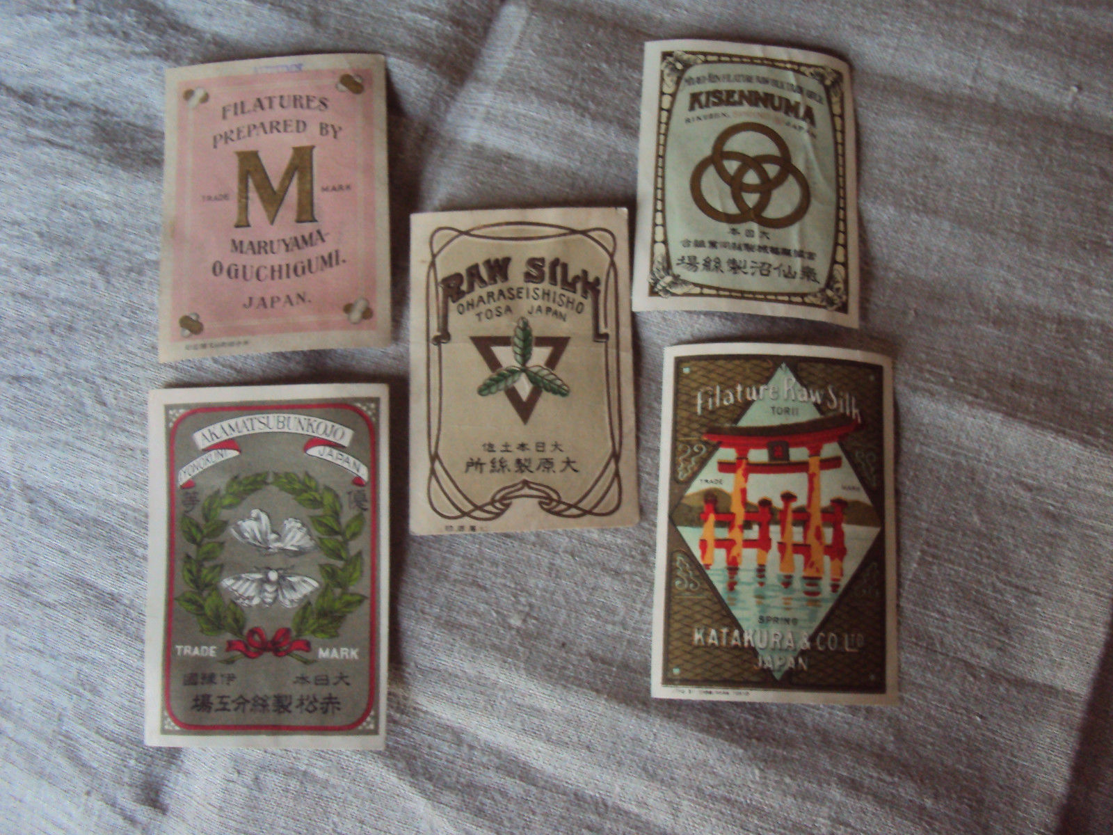 5 1920''s Japan Raw Silk Filature Labels G