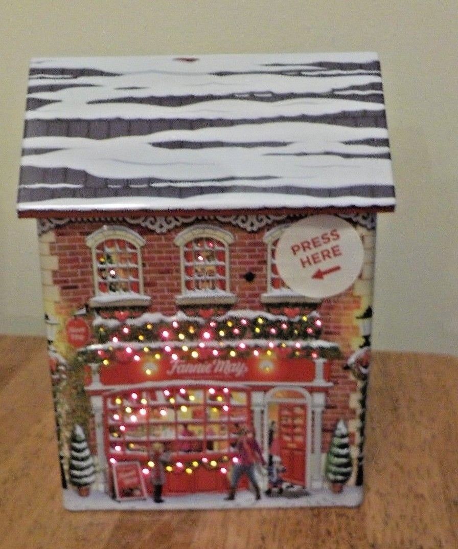 FANNIE MAY CANDY STORE TIN BOX LIGHTS UP 7" X 5"
