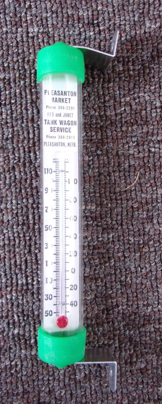 Vintage MARKET & TANK WAGON SERVICE THERMOMETER....Pleasanton, Nebraska