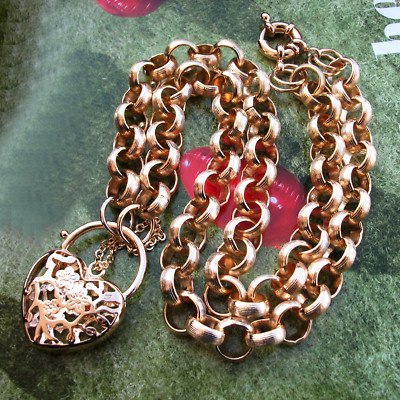 Title (ebay affiliate link): 9K Solid Yellow Gold GF Heart Padlock Necklace 50cm