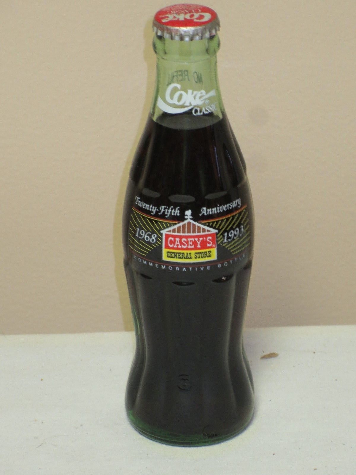 Title (ebay affiliate link): 8 OZ COCA COLA COMMEMORATIVE BOTTLE - 1993 CASEY''S GENERAL STORE 1968-1993 FULL