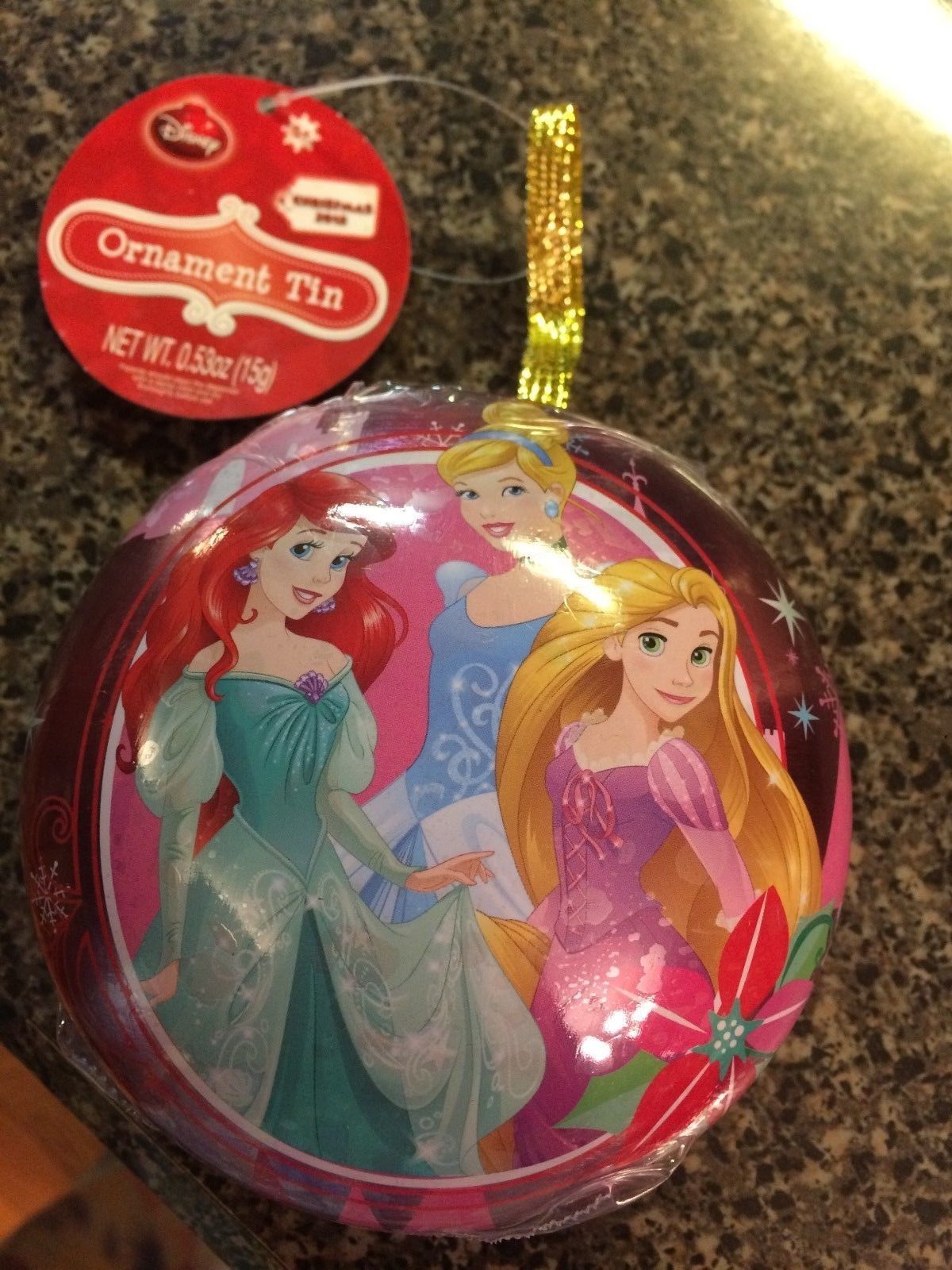 Title (ebay affiliate link): Disney Princess Collectible Fillable Tin Ornament Ariel Cinderella Rapunzel New