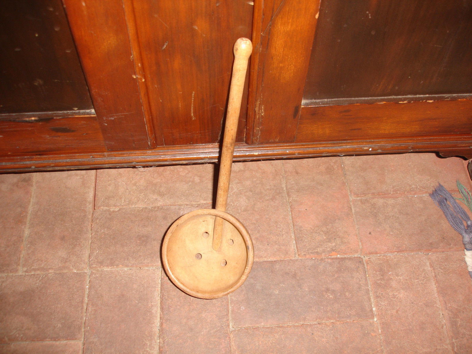 A MILK CURD LADLE , FROM THE SOUTH EAST PENNA. AREA. USED FOR GATHERING CHEESE