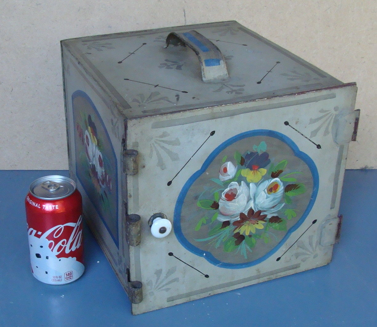 Title (ebay affiliate link): Dated 1878 tin tole cake / pastry carrying box, early original painted surface *