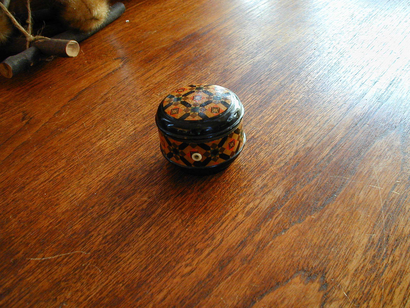 Title (ebay affiliate link): Antique Decorated Wood Treen String Thread Spool Holder