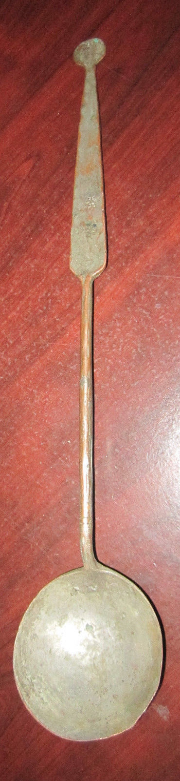 Primitive Antique Hand Forged Kettle Spoon LADLE OLD Blacksmith BRONZE 15 1/2"