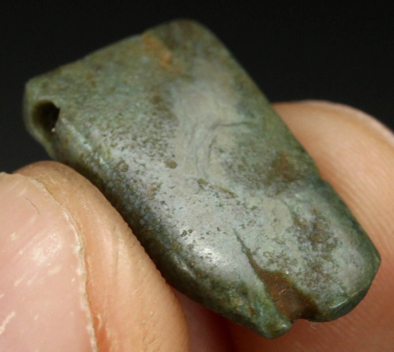 148) Ancient Pre Columbian Moche Indian Jadeite Turquoise Bead Pendant 20mm