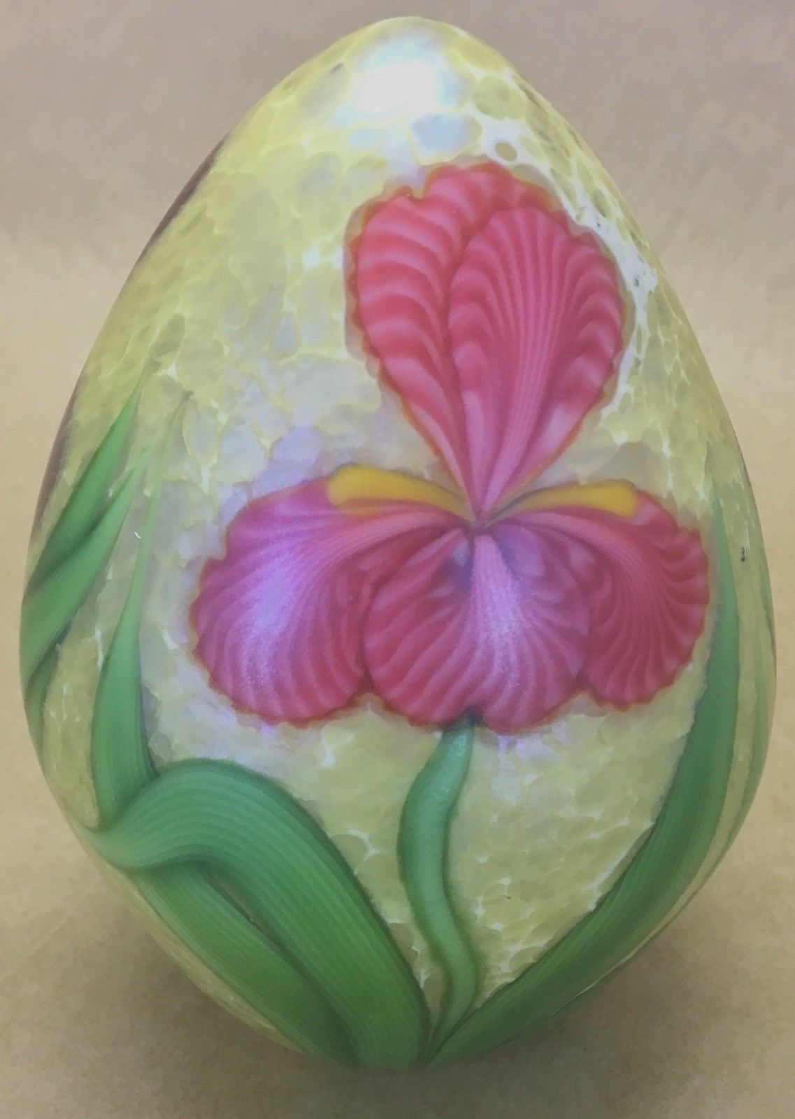 Orient & Flume Art Glass Egg Shaped Paperweight W Flowers Iridescent Alexander