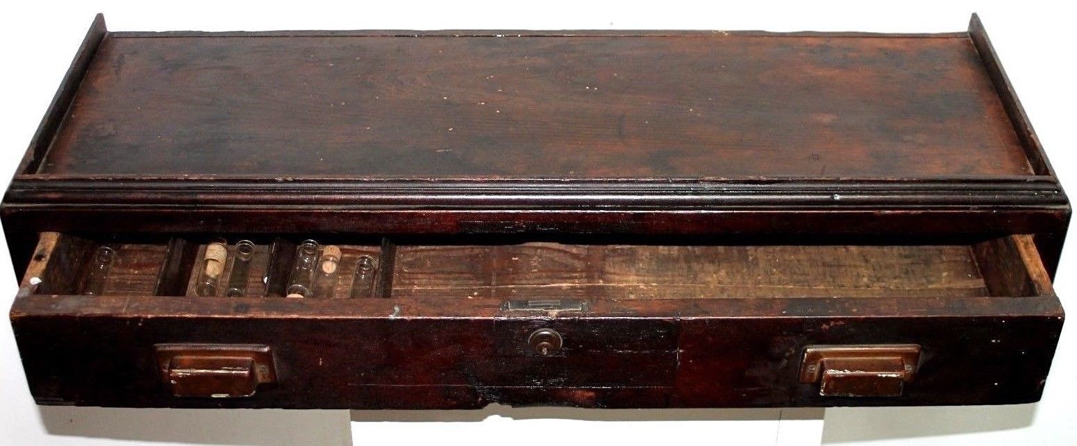 Title (ebay affiliate link): ANTIQUE 19TH C. LONG 1 DRAWER DENTAL MEDICAL CABINET W/ GLASS APOTHECARY VIALS