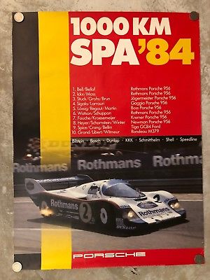 Title (ebay affiliate link): 1984 Porsche 956 1000 KM Spa Victory Showroom Advertising Poster RARE Awesome VG