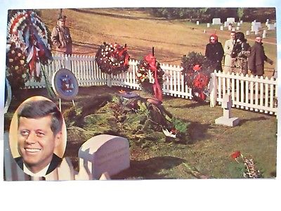 Title (ebay affiliate link): 1960s PATRIOTIC POSTCARD JOHN F KENNEDY GRAVE SITE ARLINGTON VA W/ BIO & PIC UNU