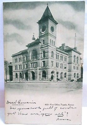 1907 POSTCARD POST OFFICE TOPEKA KANSAS