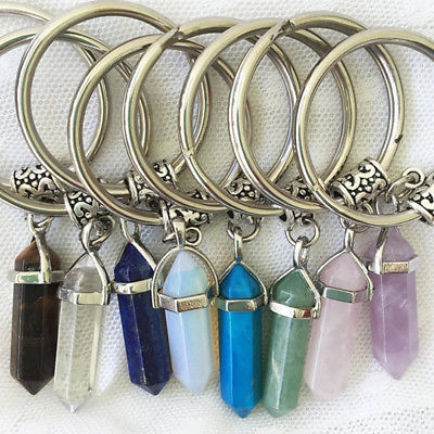 Title (ebay affiliate link): Boho Vintage Hexagon Prism Natural Stone Keychain Bag Charm Key Ring Chain ww