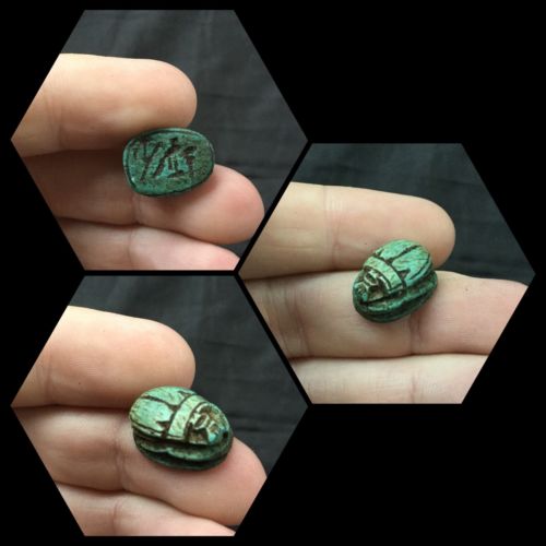 Title (ebay affiliate link): ANCIENT EGYPTIAN FAIENCE SCARAB BEETLE WITH HIEROGLYPHS, MIDDLE KINGDOM.