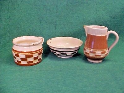 Title (ebay affiliate link): WONDERFUL 19TH CENTURY CHECKER BOARD DECORATED YELLOW WARE MINI PITCHERS & BOWL