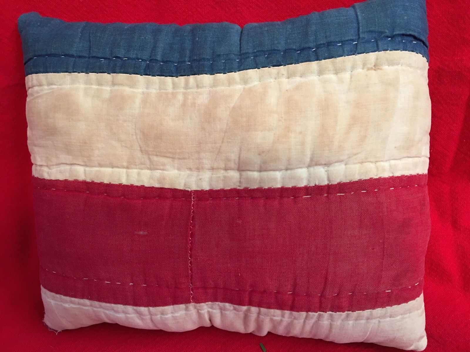 Title (ebay affiliate link): Prim pillow from vintage quilt, Americana OOAK farmhouse style, Red, cream, blue