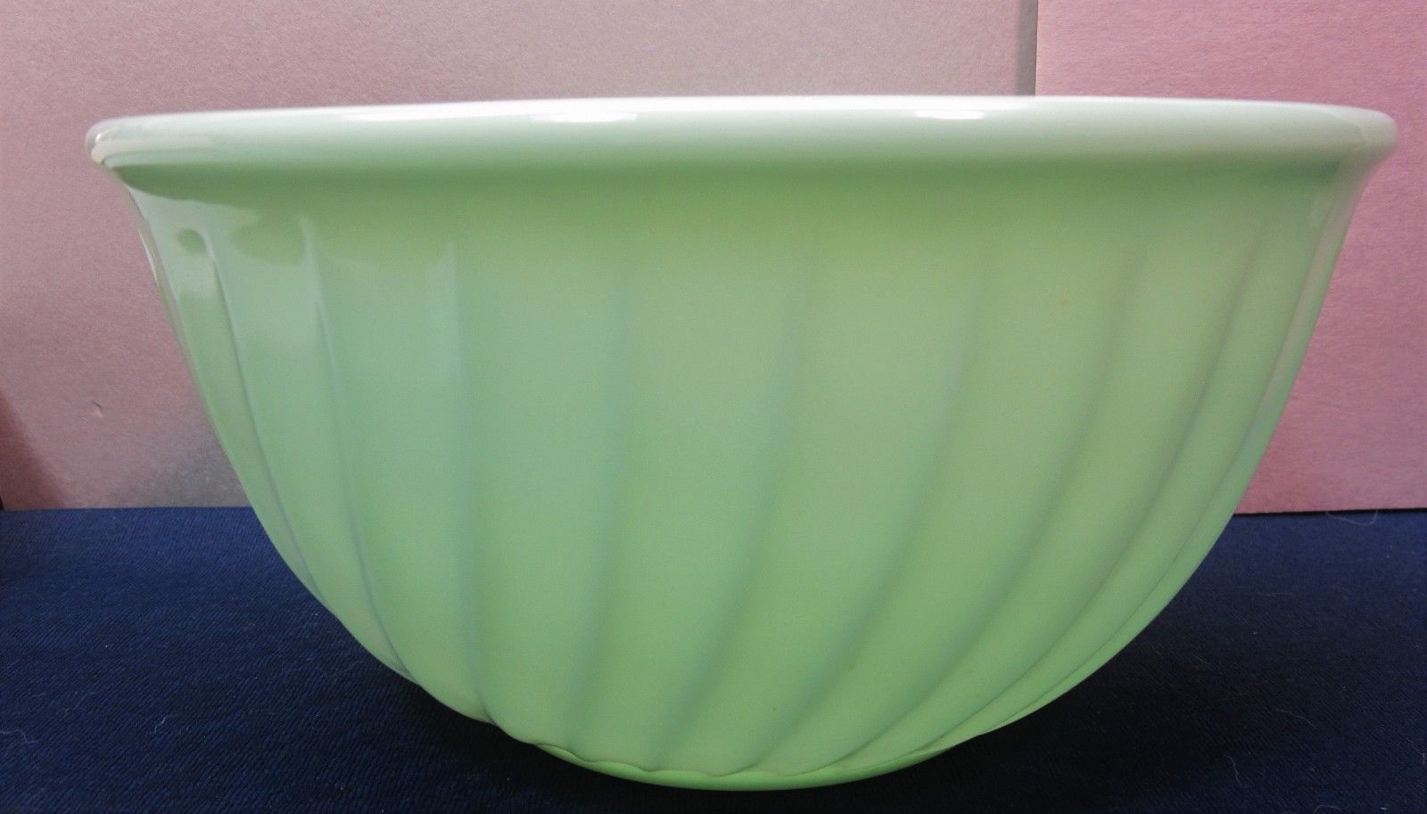 Fire King 9" Jadeite Swirl Mixing Serving Bowl Green Milk Glass 1940-50''s