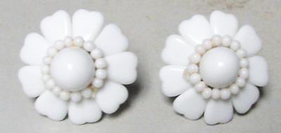Vintage 50''s Chunky Flower Milk Glass Bead Clip On Earring Japan