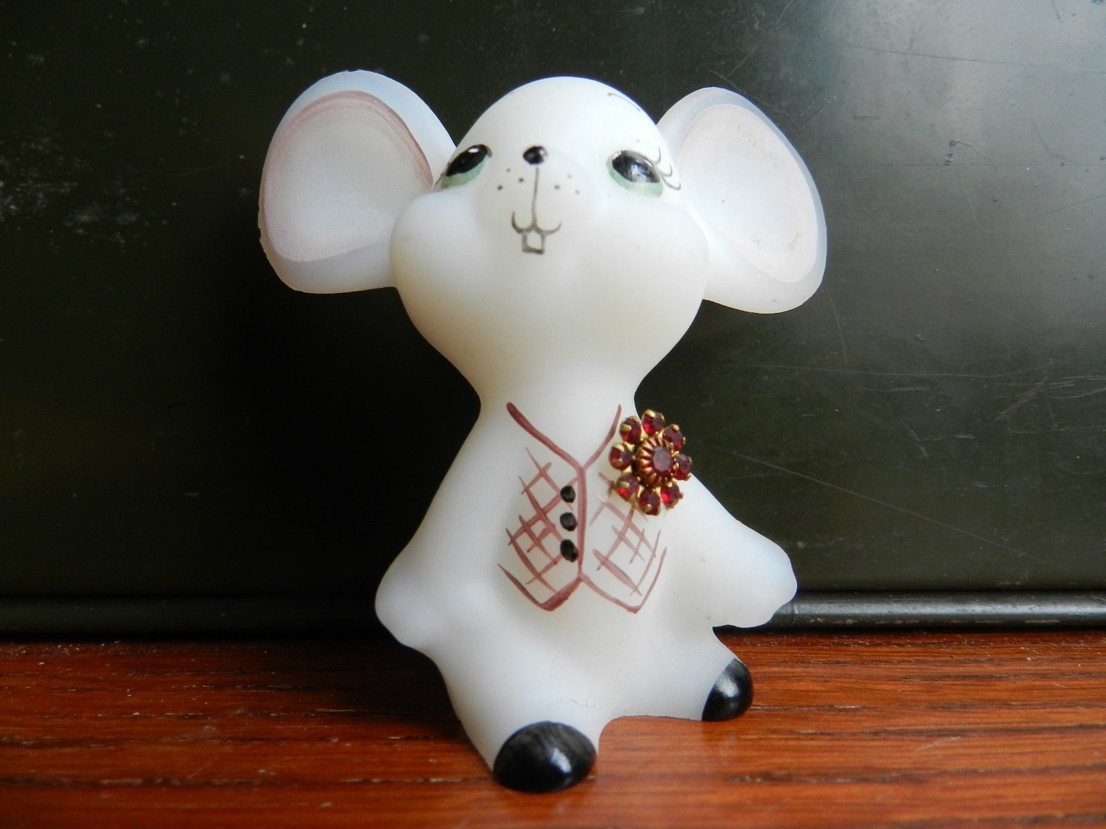 Title (ebay affiliate link): Fenton Mouse milk glass boutonniere Natural Animal Series made 1986-89 signed