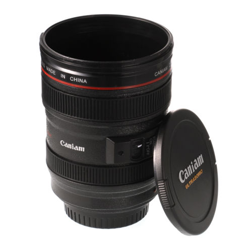 Title (ebay affiliate link): Caniam DSLR Camera Lens Cup EF 24-105mm Coffee Tea Travel Mug Thermos Lens Lid