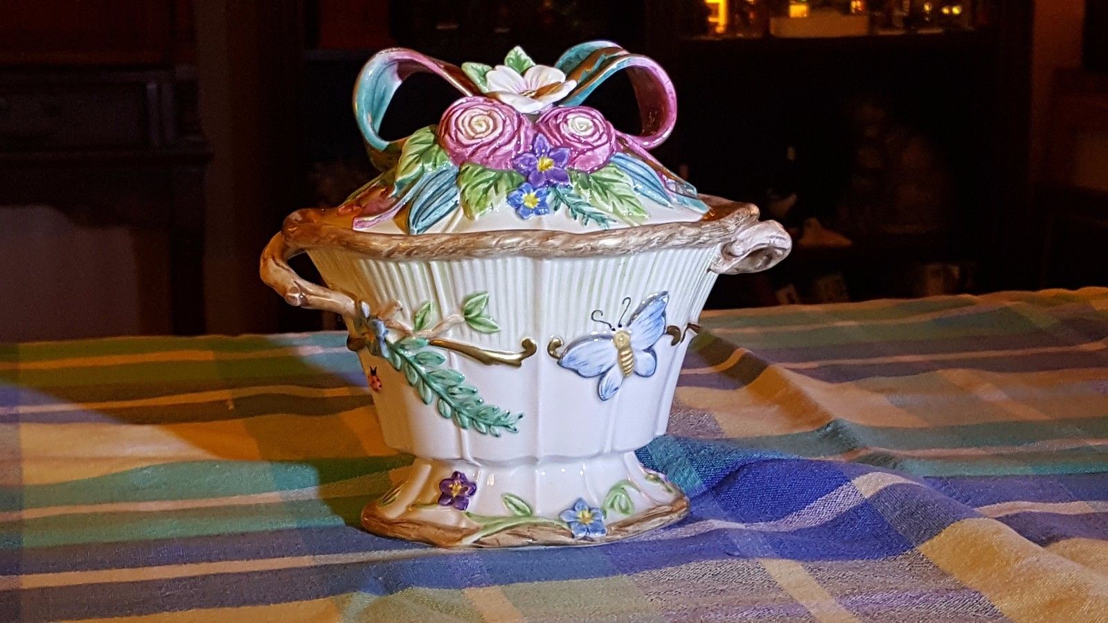 Fitz and Floyd Ceramic Covered Compote Bowl