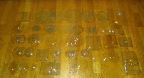 HUGE LOT NOS 67 ANTIQUE - VINTAGE REPLACEMENT GLASS CLOCK FACE CONVEX & FLAT