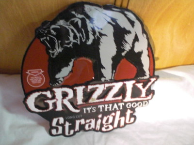 GRIZZLY ALUMINUM TOBACCO ADVERTISING SIGN NO RESERVE!!!