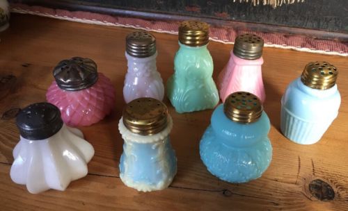Antique EAPG Colored Glass Salt & Pepper Shakers Lot Pastel