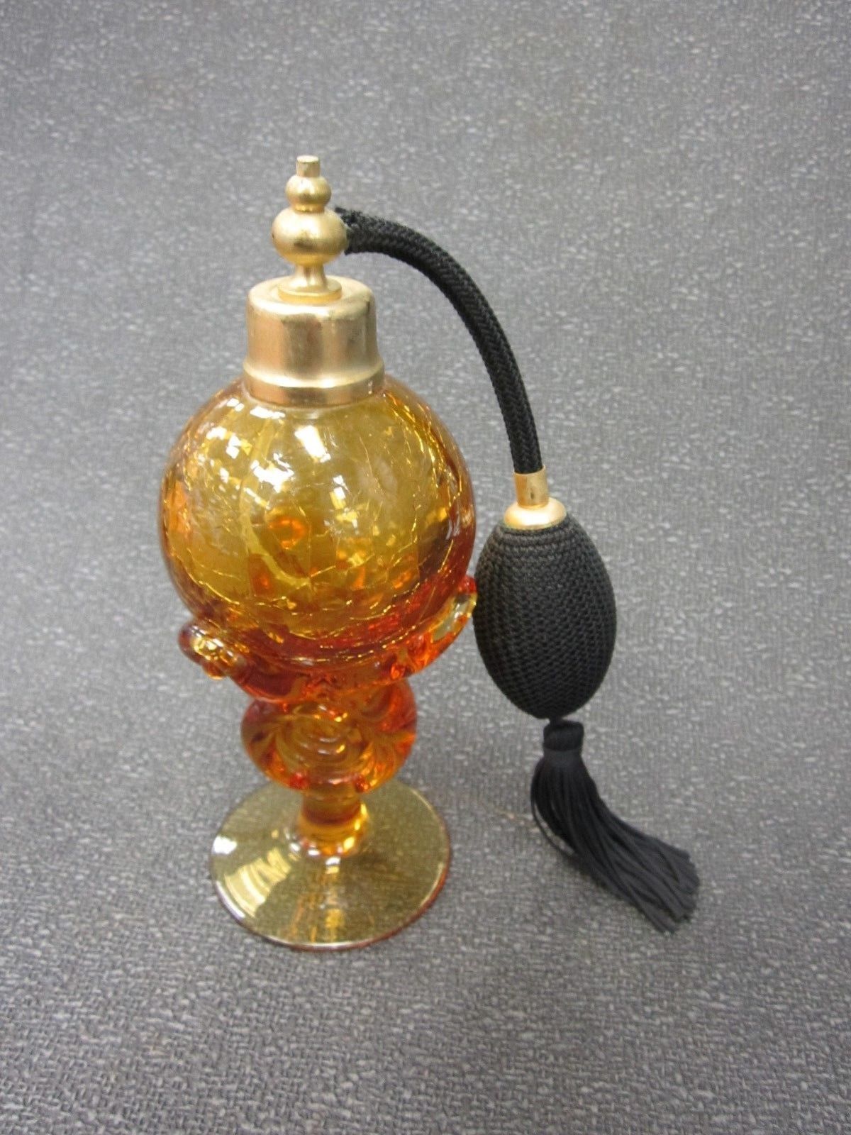VINTAGE AMBER GLASS PEDESTAL PERFUME BOTTLE / ATOMOMIZER - 7" Tall
